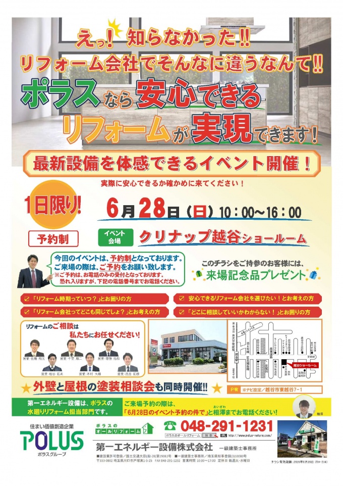 ~6月28日(日)クリナップ越谷ショールームで最新設備を体感きるイベントを開催致します!~