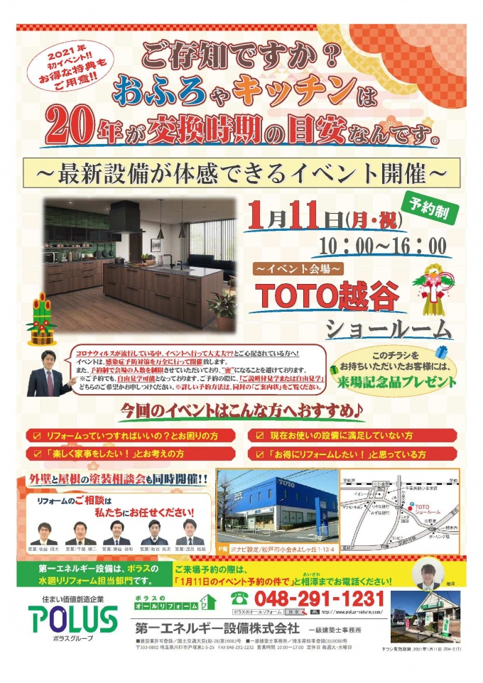 1月11日(月)TOTO越谷ショールームで最新設備を体感できるイベントを開催致します!