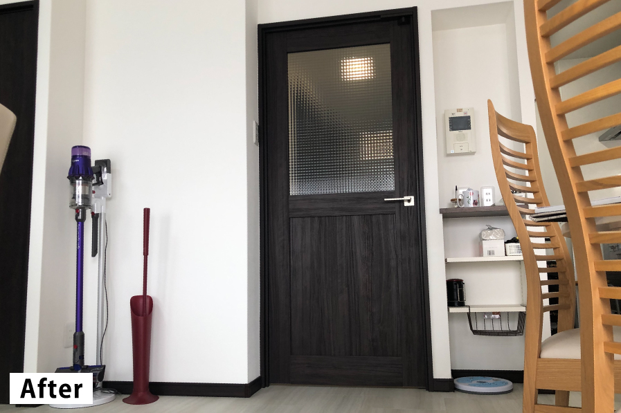 古くなった設備の交換とアップグレードなどを通じて、住環境を快適にし、理想の住まいに近づけたいというご要望でした。全体のカラーをブラウンに統一し、落ち着いた雰囲気にしました。特に落ち着いた木目調のリビングのドアは、施主様のお気に入りです。