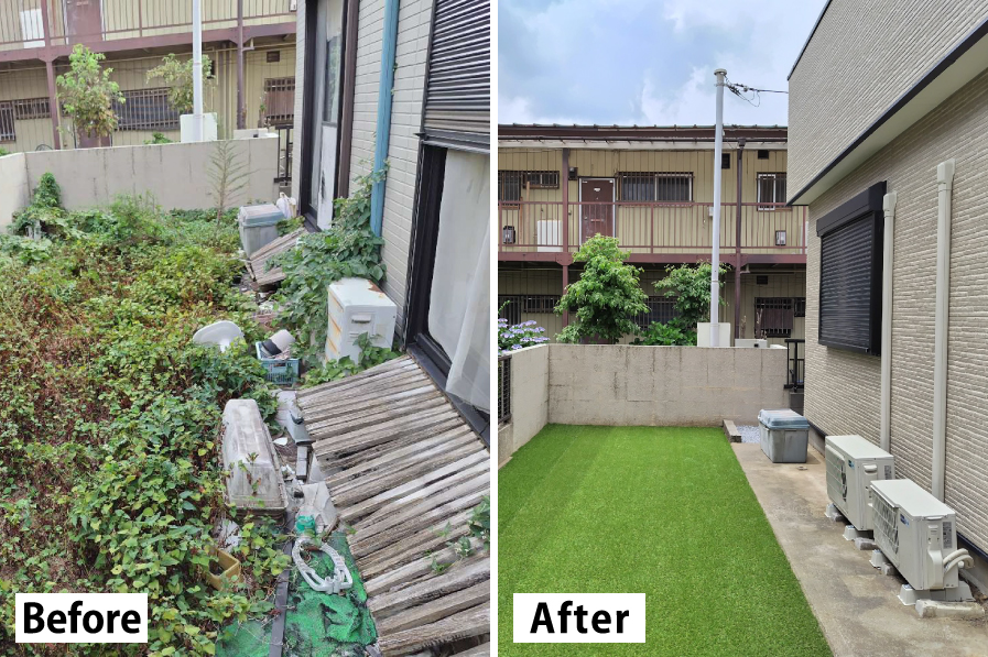 雑草で足の踏み場がなかったお庭もきれいに人工芝で整えました。