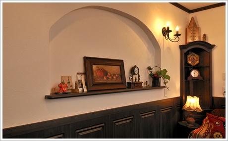 壁の厚みを利用してアーチ型に模られた棚を作成。リビング・ダイニングを彩る装飾品をお洒落にディスプレー。お手持ちの雑貨・装飾品を飾るのにはとても便利で素敵ですよね。