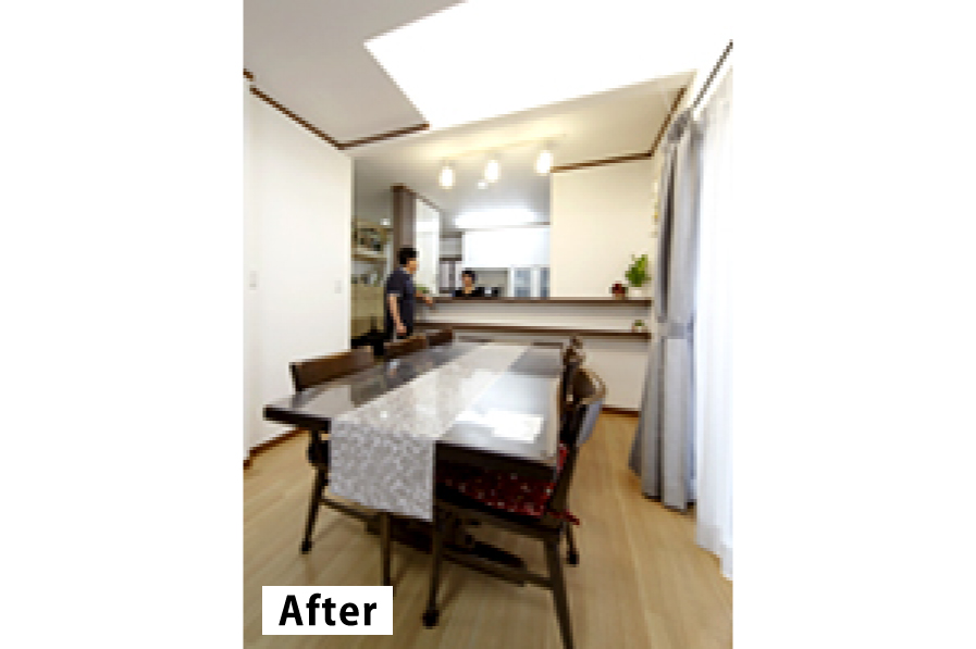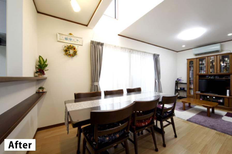 天窓のある吹き抜けで明るいLD空間
