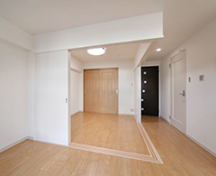 お施主様が幼少期をご両親様と一緒に暮らしていた思い出のあるこのマンションはしばらくの間、人に貸したり空き家のままだったそうです。今回、ご自身のお子様の誕生に合わせて家族3人が安心して住める様にフルリフォームを行いました。