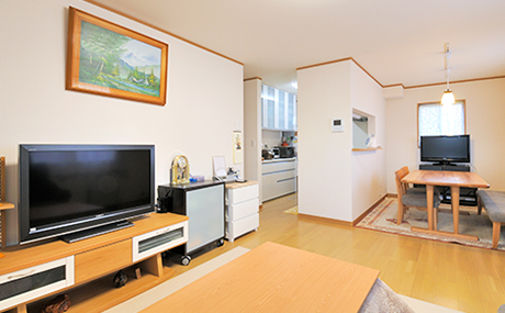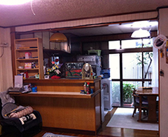 以前店舗があった1階部分。店舗部分を撤去し、1階部分は全てスケルトン状態にしてからリフォームを行いました。暮らしやすい間取りとバリアフリーに配慮した親世帯にとって快適に暮らせるLDKが実現しました。また親世帯・子世帯が一緒に食卓を囲むことも多く、二世帯が集い寛げる空間となっています。