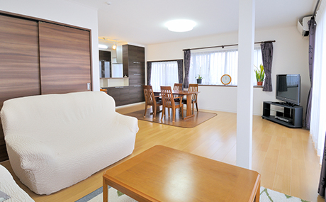 L字型の広いLDK空間で家族団らん