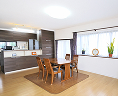 もともと二世帯住宅だったY様邸。「2階LDKの必要性を感じなくなり、そこに子ども部屋をつくりたいと考えていました。1階リビングに家族6人が集まれるような、広いLDKを希望しました」とY様。そこで既存の和室を撤去し、リビングと一体化。2世帯の家族6人が集える開放的なLDKを実現しています。また、「和室は物置状態で、有効に活用されていませんでした」との事。襖でLDKと仕切られていた和室を洋室に変更し、リビングに取り込むことで広い空間に。暗めのフローリングを明るめのものに変更し、リビングとつなげることで統一感のあるLDKを演出。