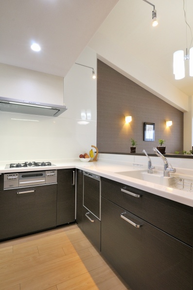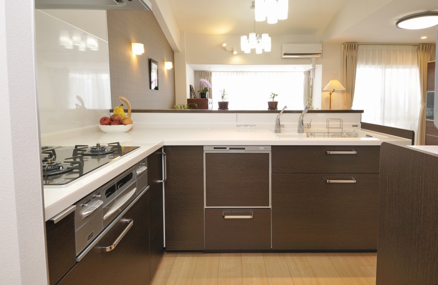 壁で囲われた閉鎖的なキッチンをダイニングに向かうL字型キッチンへ