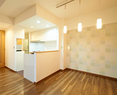 以前の床は全て敷き込みカーペットでした。今回のリフォームでウォールナットのフローリングに変更。落ち着いた空間となりました。また、リビングに隣接していた和室を洋室化し、和室とリビングの間にあった段差を解消。フローリングでつなげることで、LDKは広い空間を楽しめるようになりました。洋室にはガラスをはめ込んだ3枚引戸を採用し、デザイン的にも美しく、光を通す役割も持たせています。