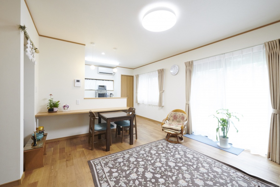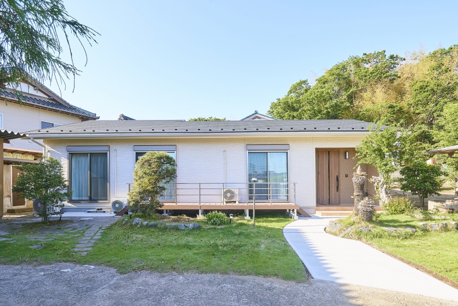 ご主人が父から受け継いだ家は築50年。暮らしやすさを考えて2階を撤去し、間取りも全面的に改変することで退職後のご主人が奥様とともに快適に過ごせる、明るく穏やかな平屋に再生しました。