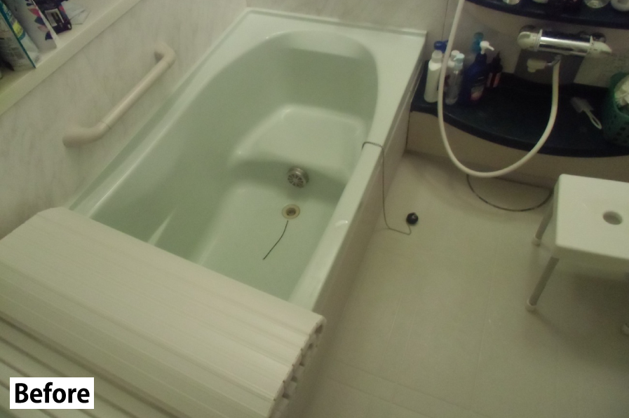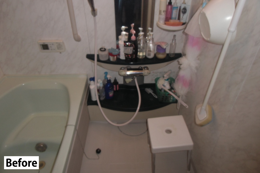 以前のお風呂は、棚が多く、物が溢れており、掃除も大変でした。
