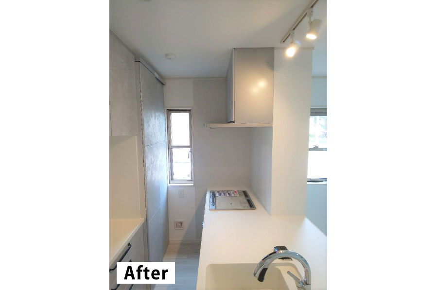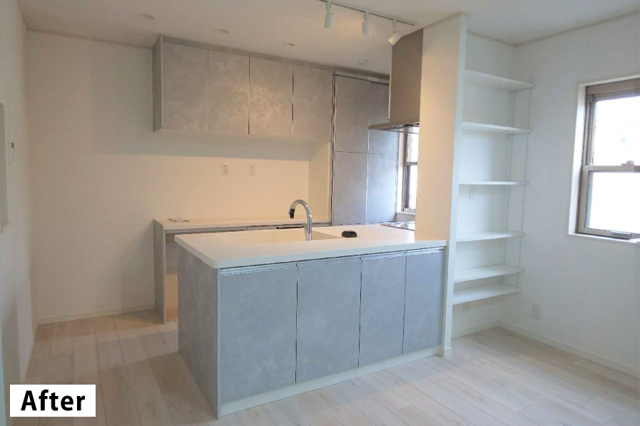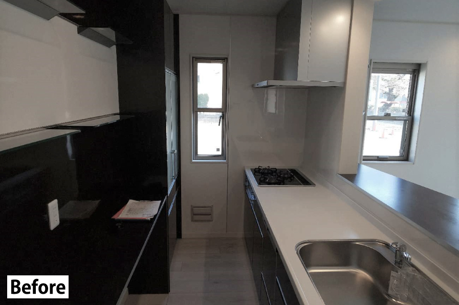 もともと対面式キッチンでしたが、新たにフラットタイプのキッチンを採用し、リビングダイニングと一体感を持たせました。