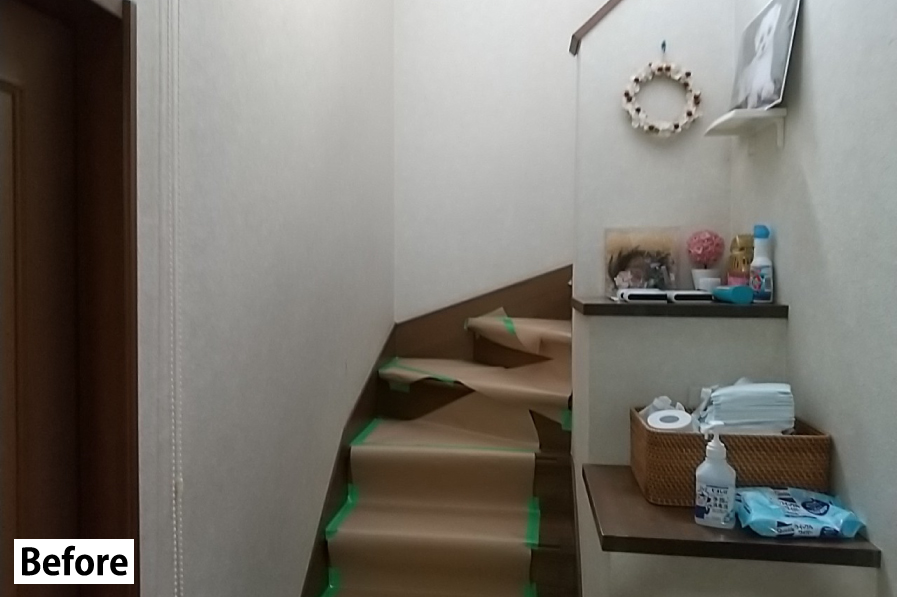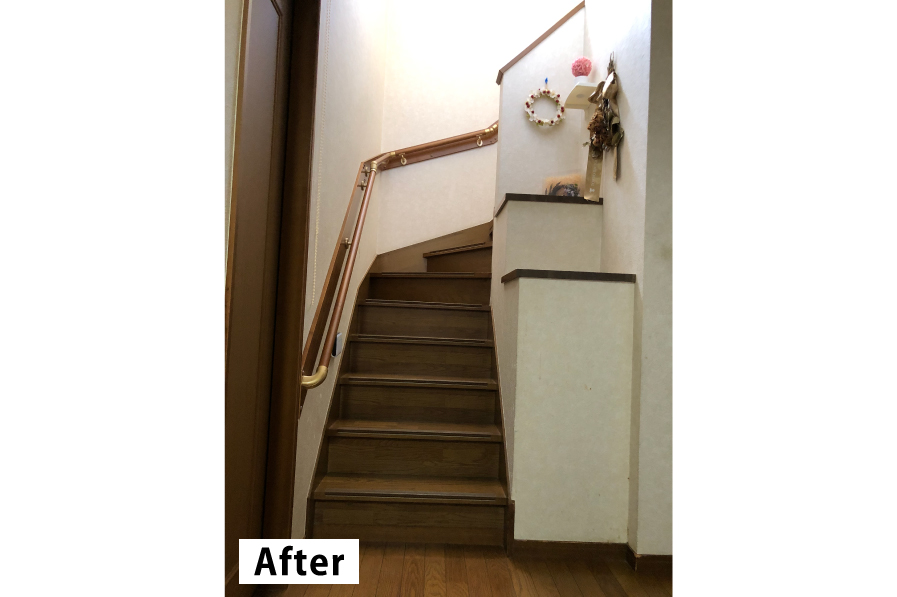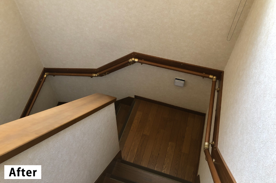 足腰が弱くなったお母様の為に、安全性と快適性を考えた階段手摺を設置。