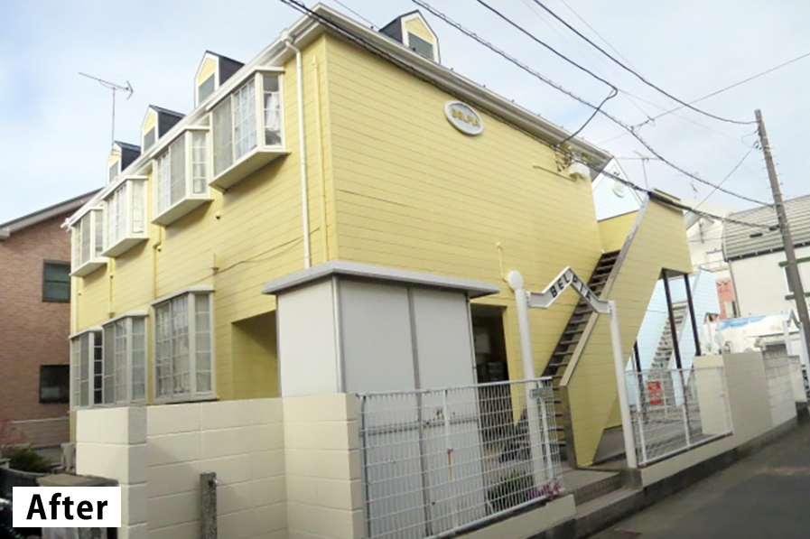 改修工事後、色褪せていた本物件は鮮やかな黄色の明るい物件に生まれ変わりました。