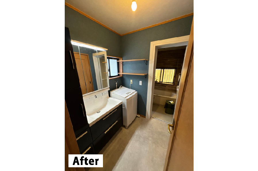 掃除もしやすくシックな洗面所にリフォーム