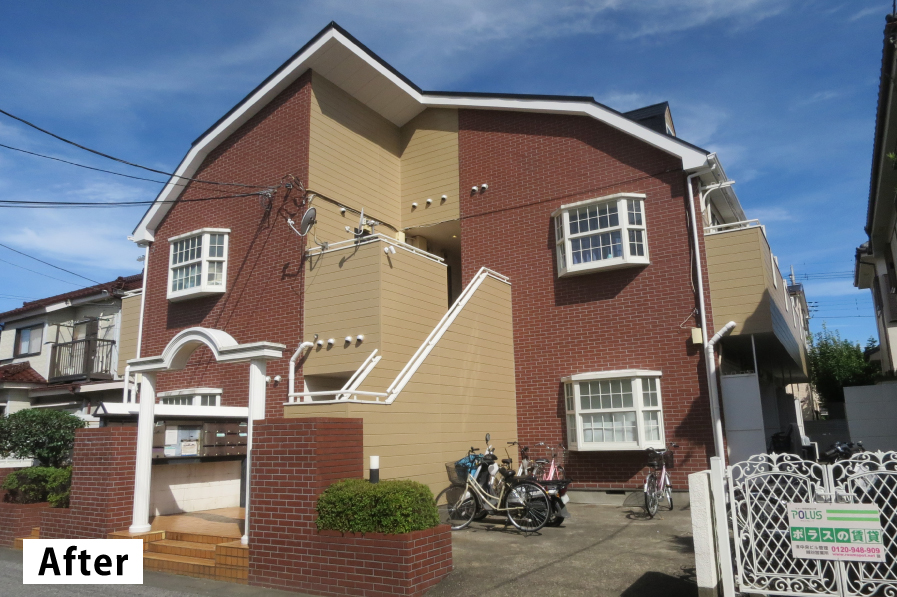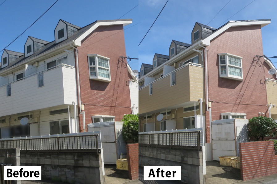 もともと明るいホワイトが印象的なツートンカラーの物件でしたが、ベージュ系の塗装にしたことで、落ち着いた温かみのあるデザインに生まれ変わりました。